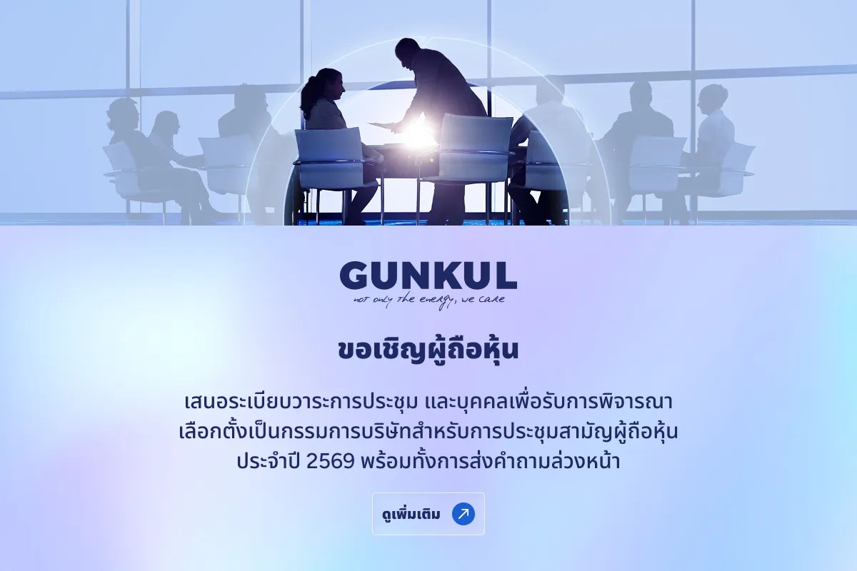 GUNKUL ได้รับการประเมิน CGR ประจำปี 2568 ในระดับ 5 ดาว “ดีเลิศ” ต่อเนื่องเป็นปีที่ 9 และได้รับคะแนนประเมินคุณภาพการจัดประชุม AGM ประจำปี 2568 จำนวน 100 คะแนนเต็ม “ดีเยี่ยม” ต่อเนื่องเป็นปีที่ 7