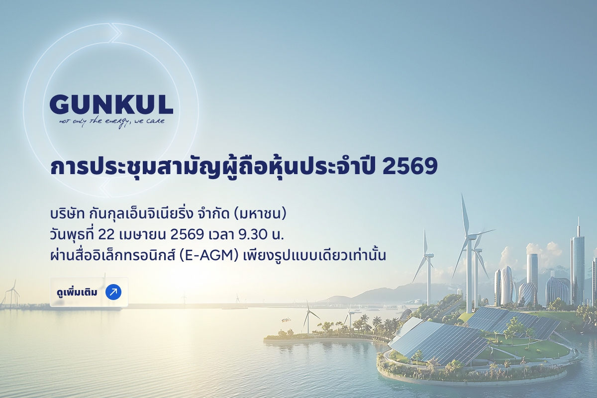 GUNKUL ได้รับการประเมิน CGR ประจำปี 2568 ในระดับ 5 ดาว “ดีเลิศ” ต่อเนื่องเป็นปีที่ 9 และได้รับคะแนนประเมินคุณภาพการจัดประชุม AGM ประจำปี 2568 จำนวน 100 คะแนนเต็ม “ดีเยี่ยม” ต่อเนื่องเป็นปีที่ 7